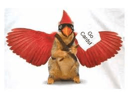 St. Louis has adopted the “squirrel” to be the Cardinal Mascot for the National League Baseball Playoffs, because some squirrel ran across the field recently and everyone fell in love with him.