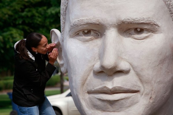 Obama wants his face on Mt. Rushmore so badly, he has sent his own statue to be in the same park in South Dakota. (see picture) Nothing like a subtle hint.