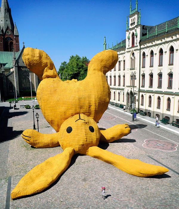 The good people of Philadelphia, are being cheered up by a giant rabbit planted in the middle of some…..square. One that reminds us all, that drinking and walking should not be done at the same time. As you can see, it’s drawing a big crowd in the middle of this jolly season. The most that you need to know about the artist, is that he’s from..the Netherlands, making some subliminal message to us all: do not move to the Netherlands. There is nothing to do there but drink yourself into a stupor.