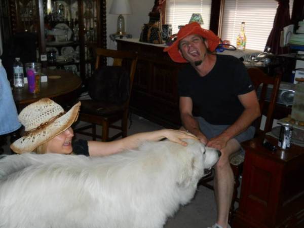 Sometimes God puts a creature on the earth that just defies all records: That’s my new buddy Gabriel. He was found wandering in the streets…and taken in by the humane society, where a good guy named PAT decided to grab him and bring him home to his neighbor Pattie, (my best friend Pattie) Now, Pattie, weighs less than Gabriel, and so, Gabriel has been a handful. He has eaten her curtains, the wood off her door, and thought that last full moon was so wonderful, he howled at it all night. (And barked.)