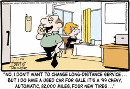 (1) Saying this, while putting down your phone and walking off (instead of hanging-up immediately) would make each telemarketing call so much more time-consuming that boiler room sales would grind to a halt. Then when you eventually hear the phone company’s “beep-beep-beep” tone, you know it’s time to go back and hang up your handset, which has efficiently completed its task. These three little words will help eliminate telephone soliciting.