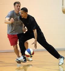 “Wow—look at that—Joe throws a shotgun down the court to Dennis Rodman. Rodman is looking good today in that little tutu, I don’t know HOW he plays in that but it seems to give him confidence—wait—he fakes a throw and BACK to Obama who turns, spins and throws back to Rodham and Dennis jumps and slam-dunks it into the basket!