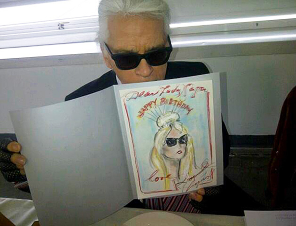 Karl Lagerfeld has put his pen to paper, not to sketch an outfit for Lady Gaga, but to wish her ‘Happy Birthday’! The head of the fashion house Chanel poured his wishes on a piece of paper by sketching a portrait of Gaga wearing sunglasses and her golden locks falling over her shoulders.