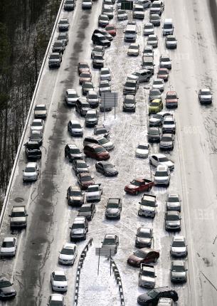 One woman’s 12-mile commute home took 16 hours. Another woman gave birth while stuck in traffic; police arrived just in time to help. Drivers who gave up trying to get home took shelter at fire stations, churches and grocery stores.