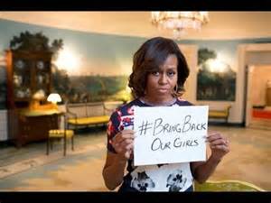 Nobody Knowswhy Michelle Obama is all concerned about the stolen girls in Nigeria. She was so concerned she held up a sign, “Bring Home Our Girls.” Rush Limbaugh reports that the Obama’s actually blame the Christian Nigerian government for inciting Muslims to kidnap, rape, and torture young stolen women, and that’s why the Boko Haram thugs were never put on the terrorist lists. So why all the attention now? Was it because Putin was making Obama look like a girly girl on the world stage?