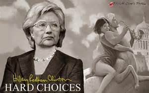 “What’s true in our daily lives is also true at the highest levels of government. Keeping America safe, strong, and prosperous presents an endless set of choices, many of which come with imperfect information and conflicting imperatives.(I like how she gives herself excuses for her screw-ups here) … As Secretary of State I thought of our choices and challenges in three categories: The problems we inherited, including two wars and a global financial crisis; the new, often unexpected events and emerging threats, from the shifting sands of the Middle East (shifting sands? Really Hillary, so poetic) to the turbulent waters of the Pacific to the uncharted terrain of cyberspace; and the opportunities presented by an increasingly networked world (Yes, there’s that New World Order you guys love) that could help lay the foundation for American prosperity and leadership in the 21st century.