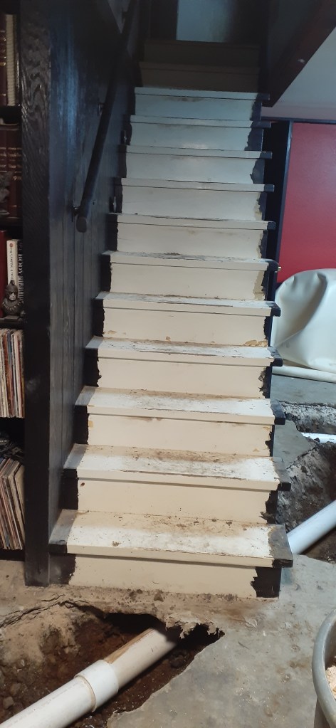 And we haven’t even started on the ‘restoration’ process. It will probably be another year before we get BACK to where we were…whole walls have been torn out. New rugs purchased and laid out. Furniture replaced. (sigh)