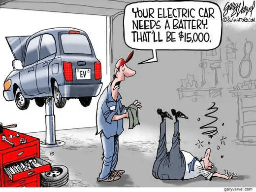 If you think that’s bad, imagine the electric car batteries, and solar panels, and windmills that will be piling into the trash heaps. Nuclear waste? Ah….well…as long as there’s no earthquakes….