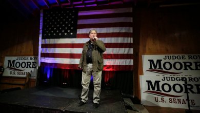 Trump is an “illegitimate president and does not have the vote of the people,” Moore told NBC News as he ascended up the floors of the ornate building that bears Trump’s name in gold on the front of it.