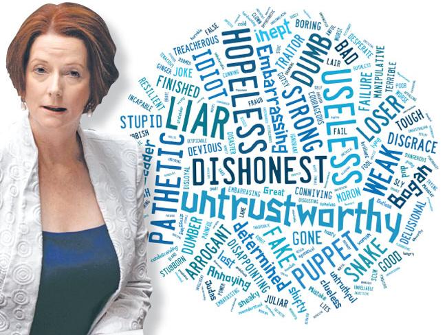 A word-cloud from a newspaper survey: Give one word that sums up the (our Oz) PM.