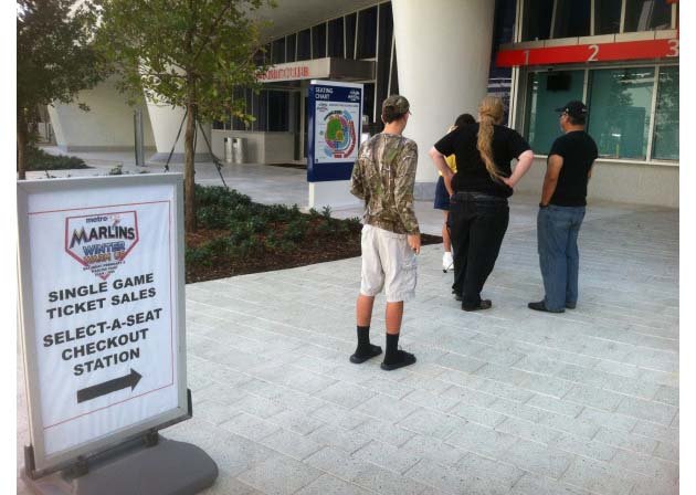 And then you have the Miami Marlins, whose fan base consists of four people standing in line to get tickets to the Miami Marlins Winter warm up FANFARE event. Evidently, they ate before they came to the park.