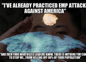 Every year, we give billions of dollars to other countries…billions. And yet, many of these countries DREAM of hitting the United States with an EMP. North Korea has the capability of hitting us with one. Most experts agree, getting our electrical back up would take at least 5 years…no food, no gas, no medicine, no phones, no Facebook, sewer backup, and then there would be the ‘mobs’ which would be stealing food.