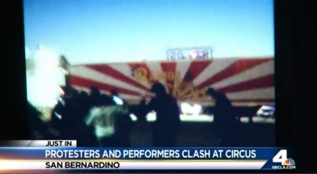 Circus workers allegedly tried to stop the activists, who had been picketing outside the property where the family-run show was performing, from forcing their way inside the tent.
