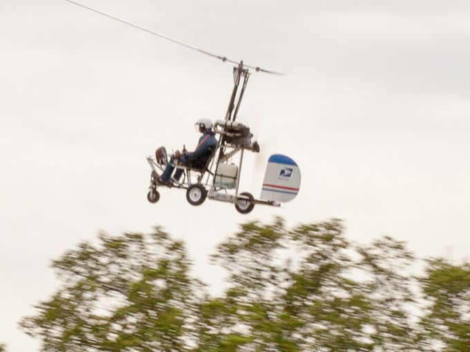 Was it Doug the mailman who practiced flying his gyrocopter in order to become the only man in postal history to deliver mail by gyrocopter? Was this a way to get rid of those gas guzzling trucks and make the postal men just fly onto your front lawn? Will he still get his pension?