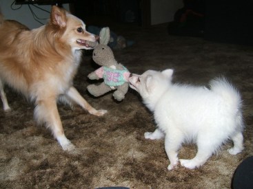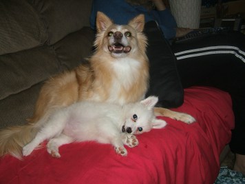 Silent. Happy. Eating with me. Sleeping with me. Teaching her “pup” to obey and be a good dog. Following me from room to room. Begging for her favorite snacks in her last days: Cracker Jacks and White Fudge Cookies. Dancing…running…filling my life with joy.