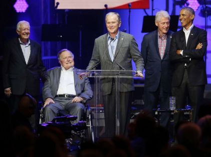 Yes…. nothing like a Hurricane to get X Presidents to come out of the woodwork to make themselves MILLIONS for their foundations.
