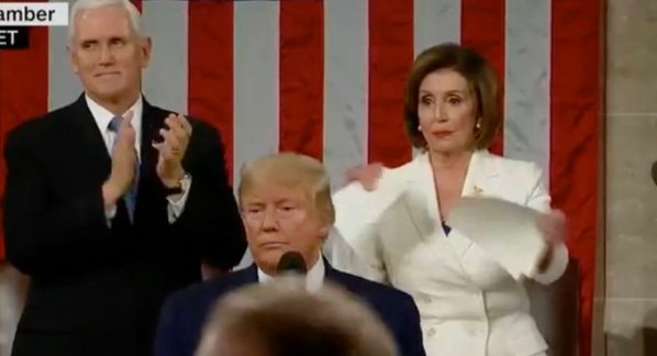 That’s what we saw tonight from Nancy Pelosi. A complete act of something a spoiled child would do. She tried everything she could to take attention off of the President. She chewed on her cud like a cow. She gave looks of surprise, and kept turning the speech as if she had never read it. She never stood to applaud. She showed NO respect for the office she holds, the Constitution, the decorum of the moment, or the simple tradition of the State of the Union itself.