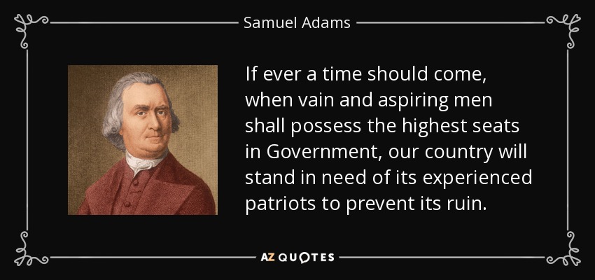 “For depth of purpose, zeal, and sagacity, no man in Congress exceeded, if any equaled, Sam Adams. ” Thomas Jefferson