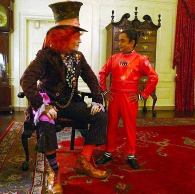 Well, now…that’s different. They decorated the White House with the finest ghoulish decor, which Nobody Thinks fits the theme of the occupants at the moment perfectly. They served blood looking drinks in glasses, and had a merry old-time, with the famous movie star, Johnny Depp. Personally, I don’t see what the fuss is about: Hillary Clinton threw a party every single day she was in the White House, serving thousand-dollar plate dinners, and by the looks of it, she spent a lot more money on White House Parties than the Obama’s so far. You can see all her parties in a book that she wrote.